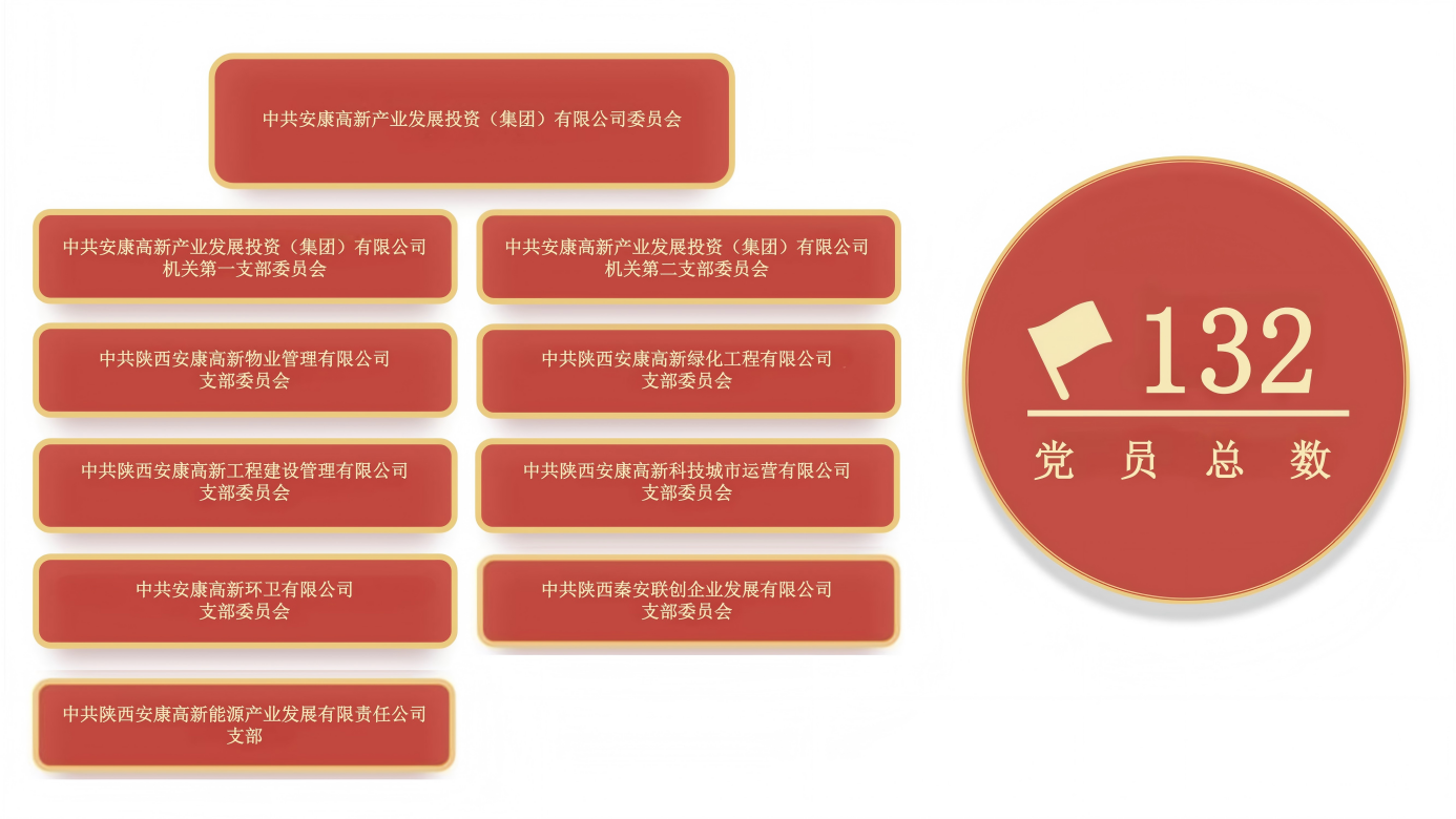 高新集團黨總支成立于2017年,于2022年升格為高新集團黨委,現(xiàn)有黨委委員6名,其中書記1名,副書記1名,紀委書記1名,下設9個黨支部,黨員總數(shù)132名。
