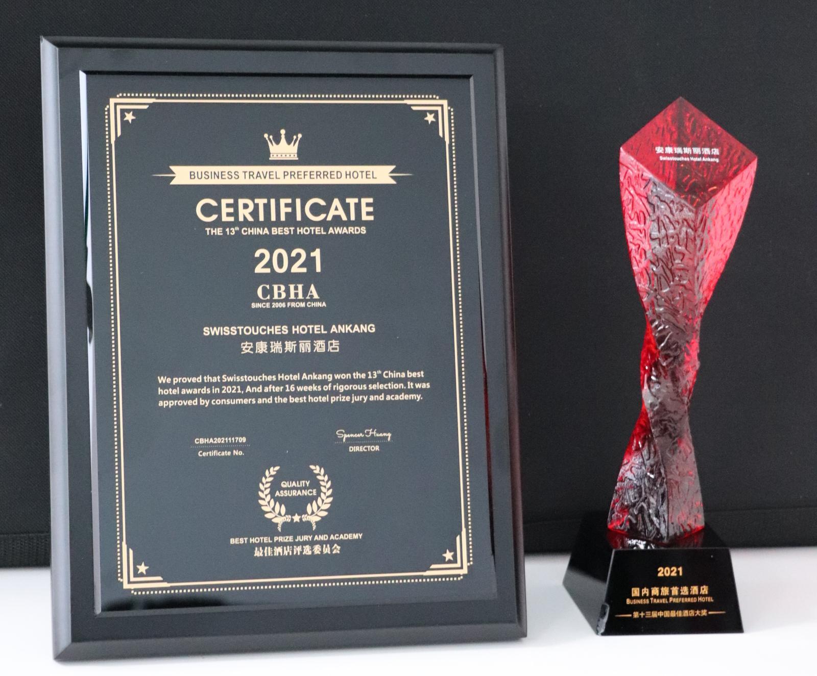 2021年11月30日,由中國最佳酒店評選委員會及悠游網共同打造的2021年度高端酒店行業大獎評選活動正式落下帷幕,并在上海面向海內外媒體正式發布。安康瑞斯麗酒店榮登榜單,并獲得“國內商旅首選酒店”榮譽稱號。